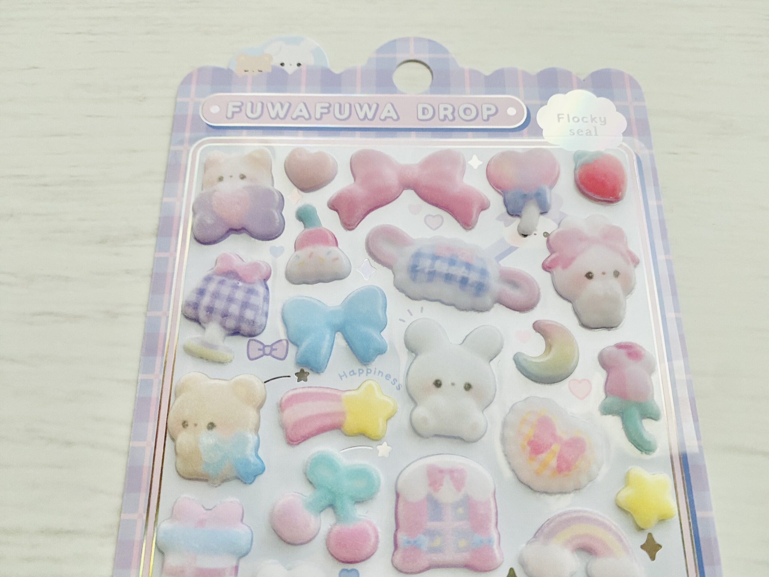 ということで、今回はフロッキー素材のボンボンドロップシール(ふわふわドロップシール)についてご紹介します。