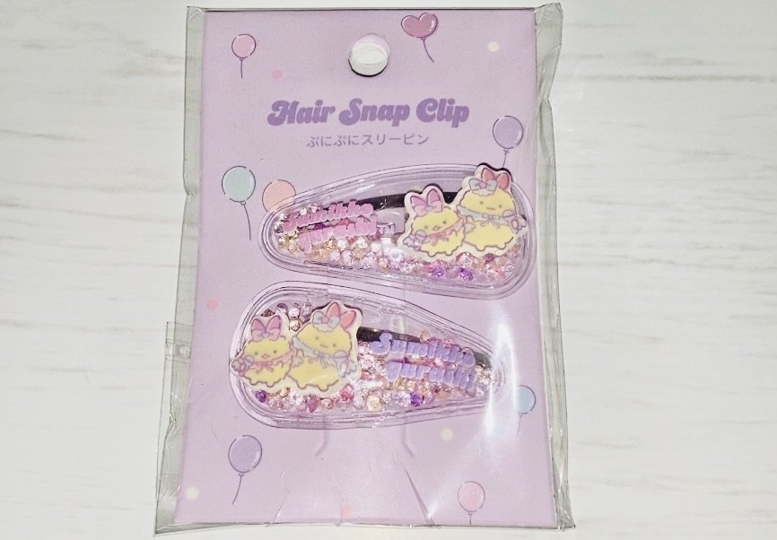 ぷにっとしたビニール素材にキラキラパーツがつまったシャカシャカ系のスリーピン。
